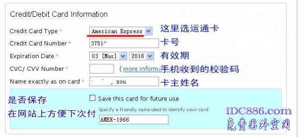 4、在支持信用卡选项里有 American Express 付款的,就可使用此卡支付