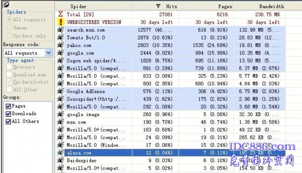 蜘蛛是一批批的(很多的IP段的)。且很多的搜索蜘蛛都来活动。