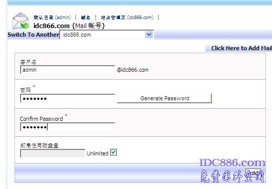 登录单个邮箱,就填 xxxx@idc866.com  密码登录