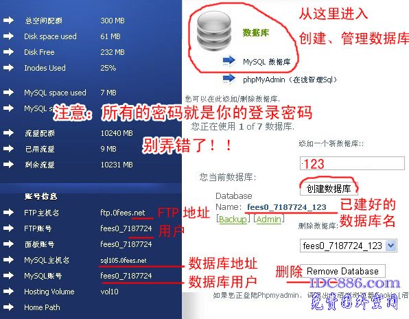 Byethost 费空间后界面操作、绑域名、数据库、FTP:
