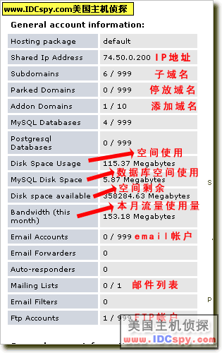 控制面板分三部分,左侧上半部分显示主机帐户基本信息:
