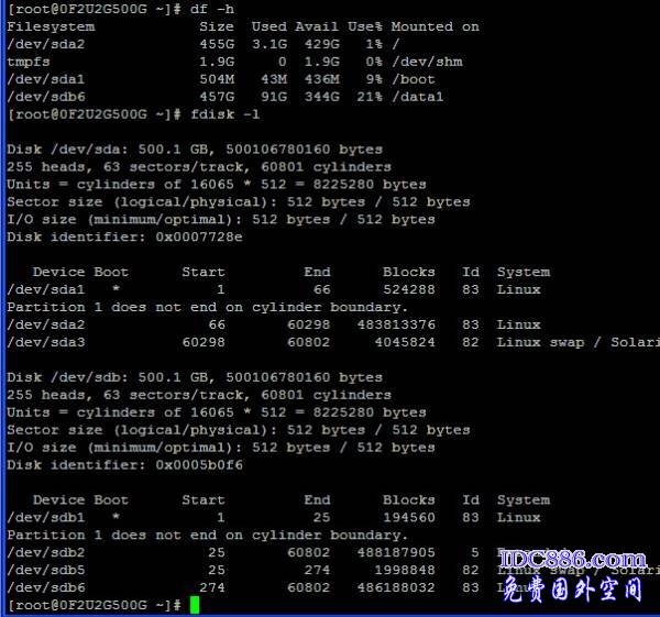 从图中可以看出,执行命令后显示 有2个硬盘: /sda、 /sdb