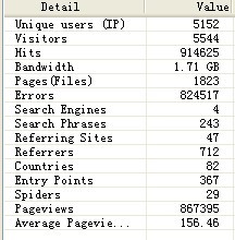 日记录刷91万PV,1.7G流量。总共访问 1823页。