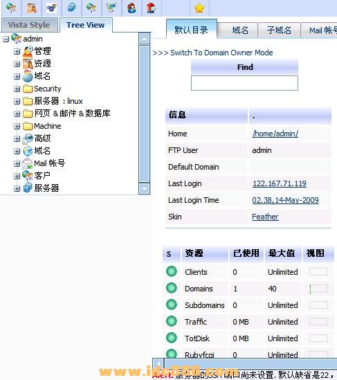 Kloxo 面板主要是建站方便,也就以下几个常用功能: