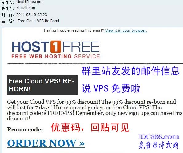 群里坛友贴的图片,说VPS免费啦,赶快试试吧。