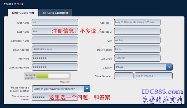 四、注册帐户信息。