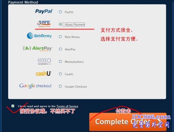 五、填入优惠码,选择支付宝付款。