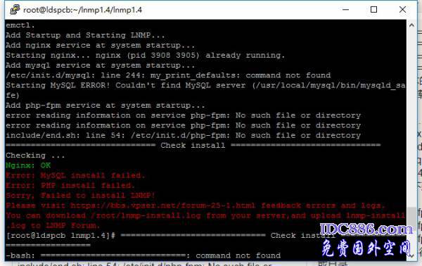 安装LNMP 1.4稳定版两次均失败 HOST VPS256主机