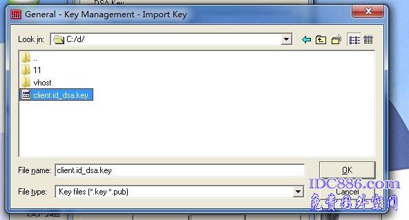 5、请点上Key 后,按Import 导入刚才从SSH下载的 KEY文件。