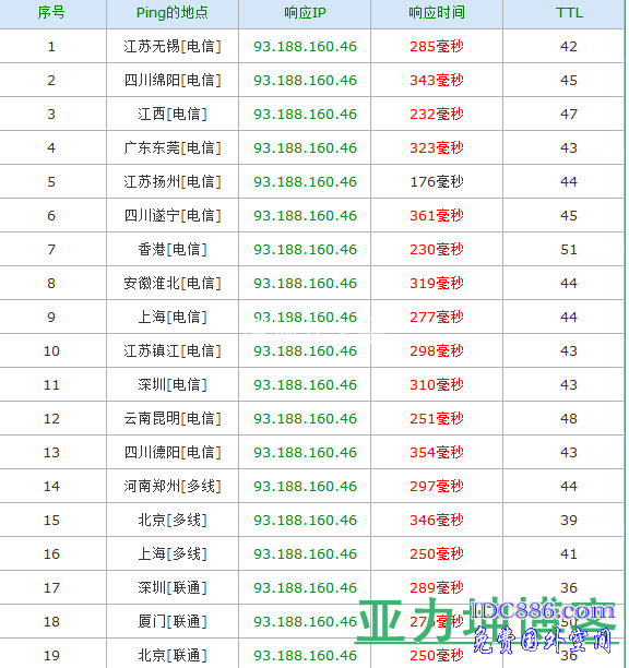 下图为网络全国PING值
