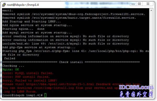 Sorry, Failed to install LNMP!