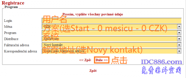 接下来进入注册地址,填写用户名,选择方案,地址,系统等,点击Dale继续.