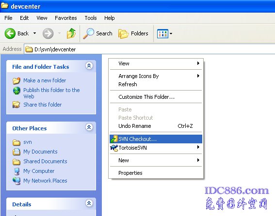 第二步,从SAE的SVN仓库检出(checkout)一个应用的全部版本代码,如图2,右键-->点击“SVN Checkout”