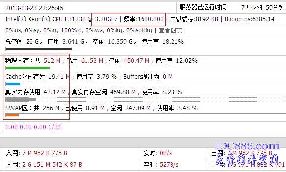 现在真实内存 512M, 再启用了SWAP区:共 256 M ,  以前是直接给768M的。