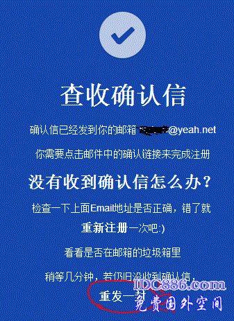 提示成功后间隔10秒以内点击重发一封(要掌握好时间,否则也是无法注册)