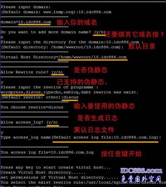 注意:在绑定域名时,就选择使用伪静态 时按 Y,并且填入 对应规则。