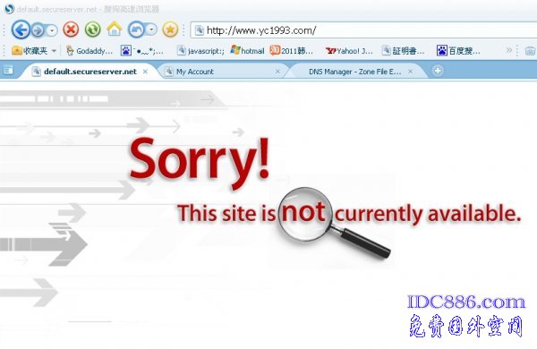 昨天在各位朋友的帮助下,进行了解析,但是今天早上打开网页,又不行了,跳出个英文图画,标题显示网址:default.secureserver.net,这是什么情况呢?www.yc1993.com  求助……