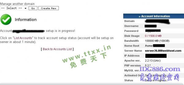 最近发现有些人喜欢一个人注册多个帐号,这是不行的,同一个ip只能注册一次,同一ip 同时注册两个他是不会给你开通的,他会认为你滥用。所以好东西也不能滥用的,一个ip注册一个帐号,放心一个帐号下面可以开无限个主机的。如果你实在有需 要,请重启你的路由器换个ip后再注册,或者隔日再注册。