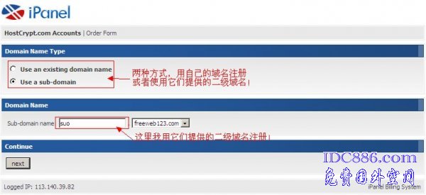Hostcrypt采用iPanel Billing System注册系统,提供两种类型的免费空间,其中一款需要发帖,今天为大家介绍的是另一款无需发帖的免费空间,下面我们来具体看一下它的配置: