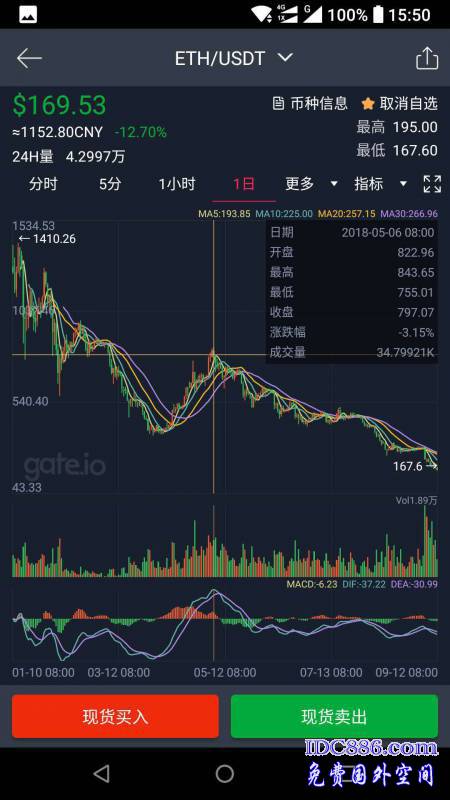 2018 ETH新低啦, $167.6 ETH新底啦,快,快上车.....