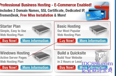 3、在右边挑选你想要买的方案,我们以Basic Hosting方案为例,点击上面的“Buy Now”,见下图。