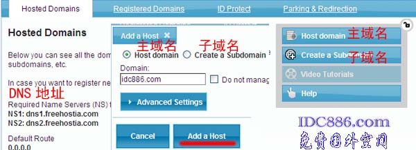 注:现在Freehostia免费空间不再支持.TK、co.cc 等免费域名,会提示已存在。
