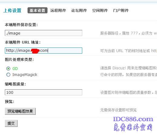 3,在discuz后台使用远程附件,空间使用子域名那个目录,附件路径就是image.XXX.com/fujian
