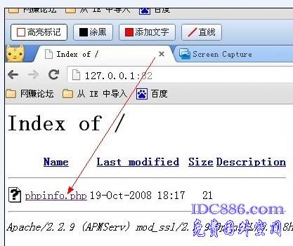 开始想在本地安装PHP环境用分开的方法安装的。就是安装APACHE mysql PHP 。怎么折腾没有成功。最后只好用集成环境APM serv .也遇到总总难题。主要80端口被占用。后来就该了82端口。总算APACHE正常启动。但是用IE 打开E:\APMServ5.2.6\www\htdocs\phpinfo.php 还是出现问题。出现下载界面。,用其他浏览器打开就显示源代码,