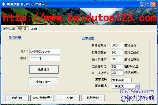 注:不能拔号的无法刷,这软件没有使用代理IP功能,都是切换真实IP刷。