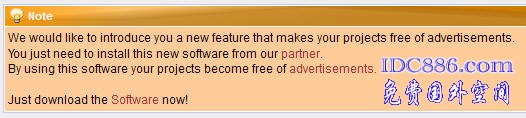 注意:我们想给你介绍一个新的功能,使您的项目免费广告。