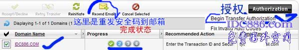 (输入授权码,请联系原域名商,要回授权码,并要解除域名锁定)