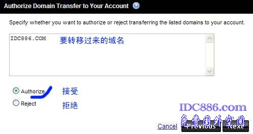 显示和接受要转移的域名。