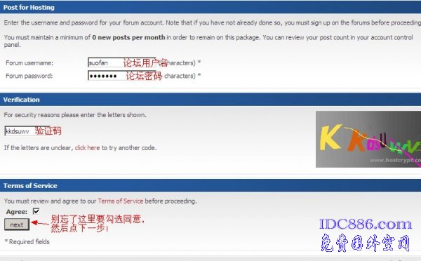 Hostcrypt采用iPanel Billing System注册系统,提供两种类型的免费空间,其中一款需要发帖,今天为大家介绍的是另一款无需发帖的免费空间,下面我们来具体看一下它的配置: