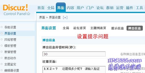 DZ、DX后台设置:界面--界面设置--弹出信息--注册页面:填你的问答